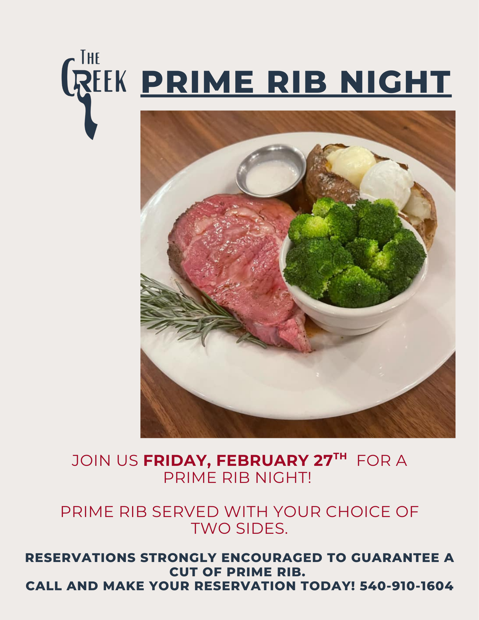 To reach The Creek Restaurant directly call: (540) 910-1604